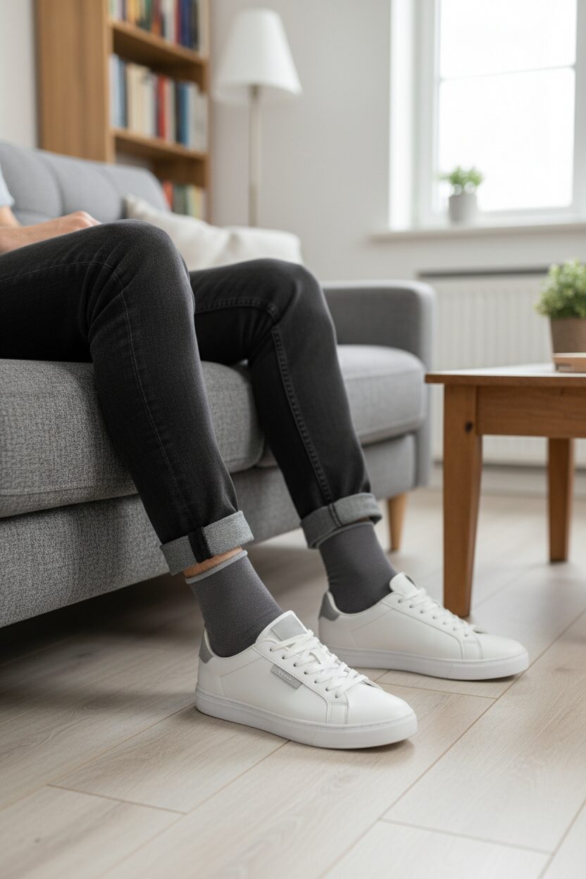 Uniwersalność – Elegancki, szary kolor sprawia, że skarpetki doskonale komponują się z różnorodnymi stylizacjami, od casualowych po bardziej formalne. Są idealne zarówno do jeansów, jak i eleganckich spodni.