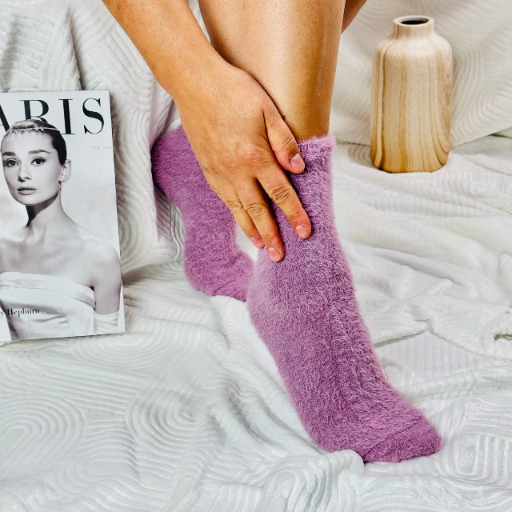 Ciepłe puszyste skarpetki z norki alpaka touch futerko liliowe 38-41