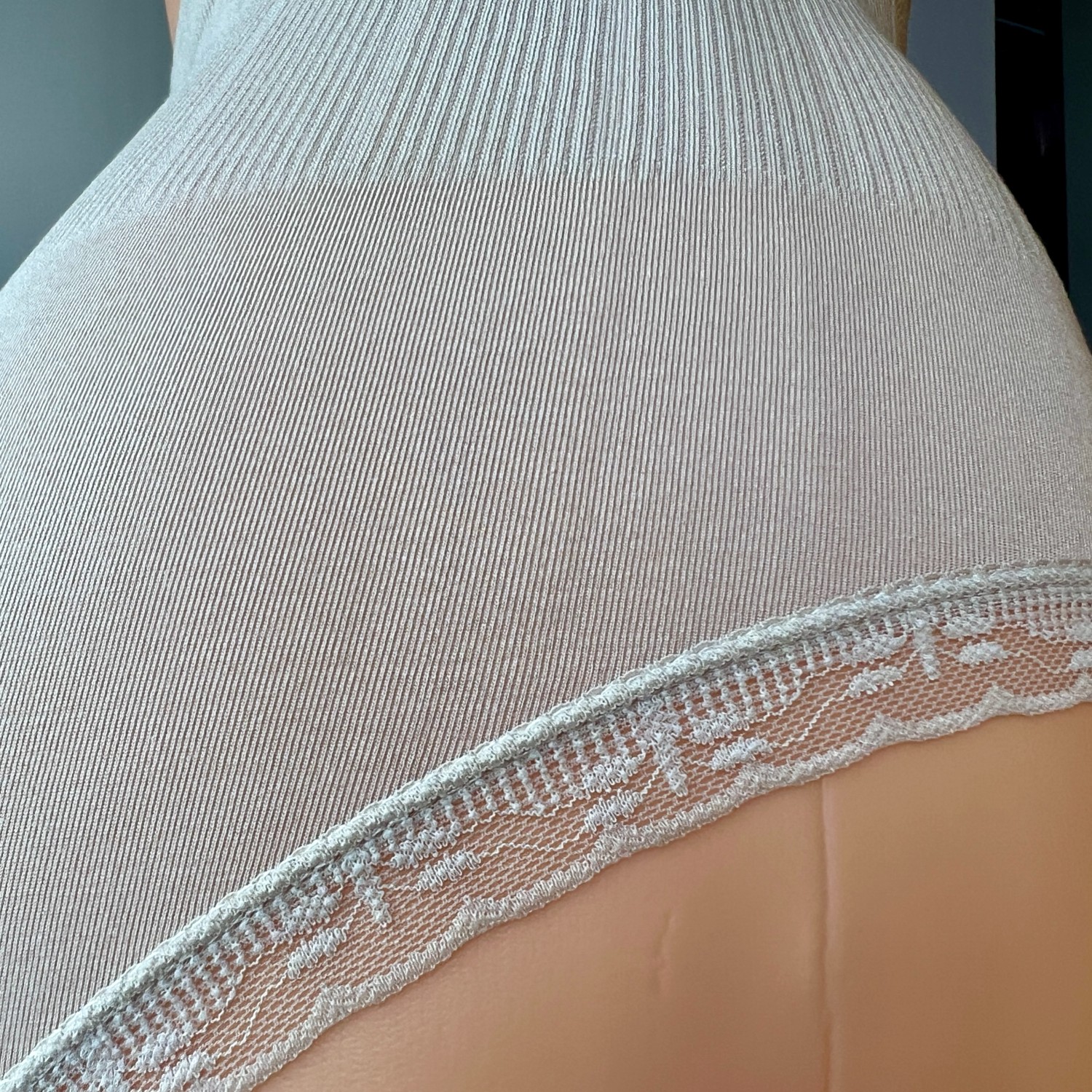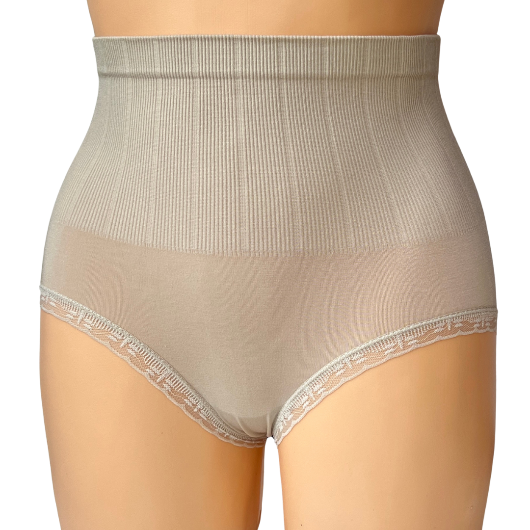 Ich wysoka talia skutecznie wygładza sylwetkę.