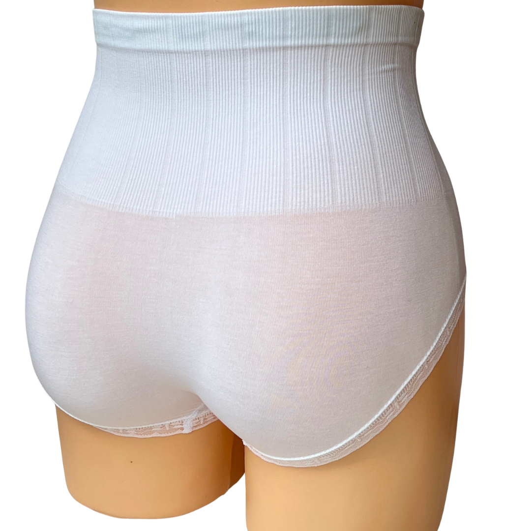 Ich wysoka talia skutecznie wygładza sylwetkę.