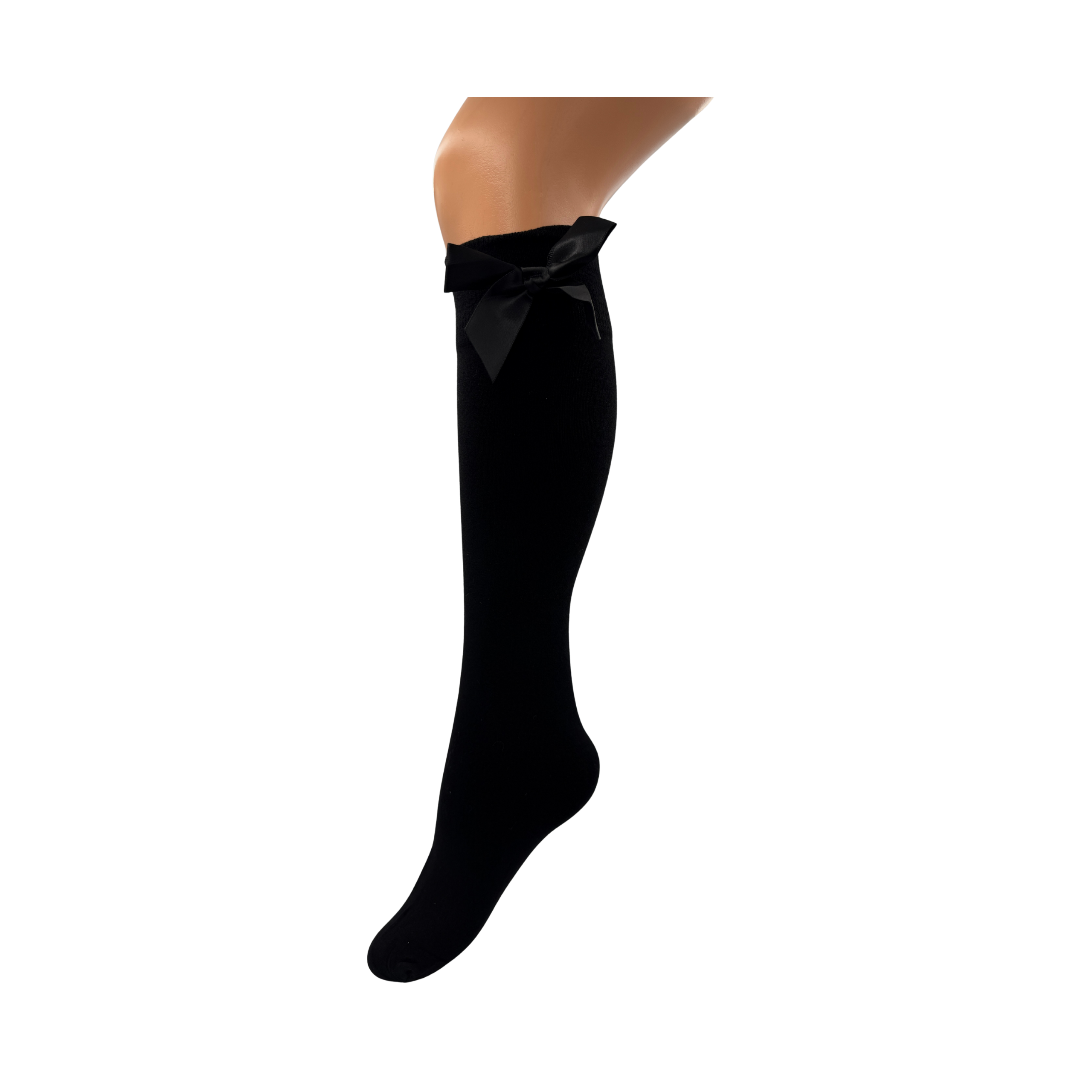 Podkolanówki termiczne z kokardą dla kobiety z wysokojakościowej bawełny. Z boku z czarną kokardą.