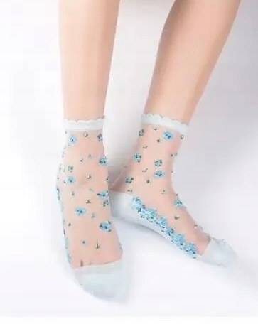 Nie czekaj! Zainwestuj w swoje samopoczucie i styl dzięki naszym skarpetkom siateczkowym błękitnymi z takimi samymi kwiatkami. Przekonaj się, jak wiele możesz zyskać poprzez małe detale. Twój indywidualny styl zasługuje na najlepsze produkty!