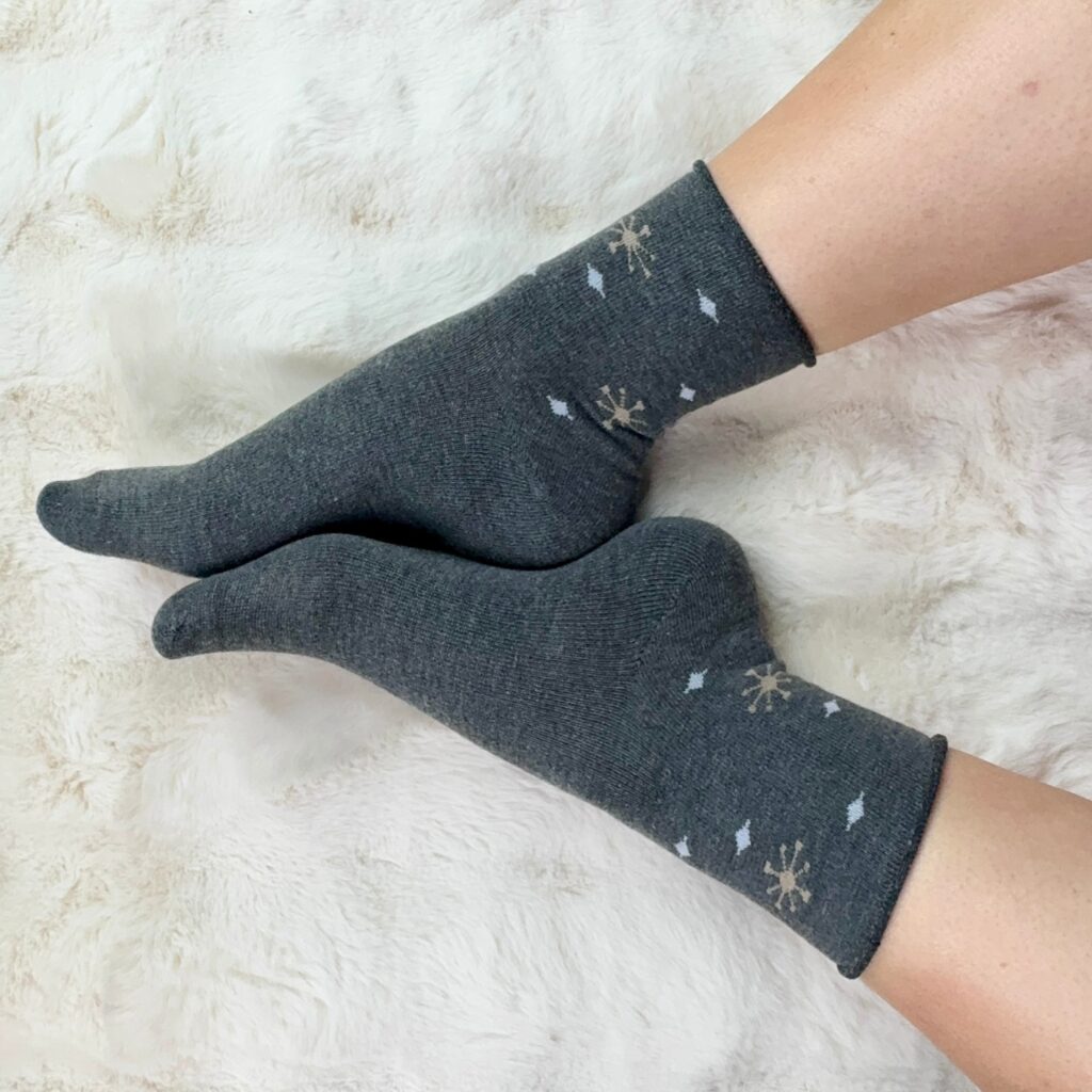 Skarpetki bezuciskowe zimowe w ciemnym szarym kolorze z delikatnym wzorem gwiazdek