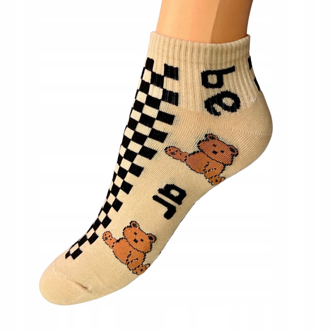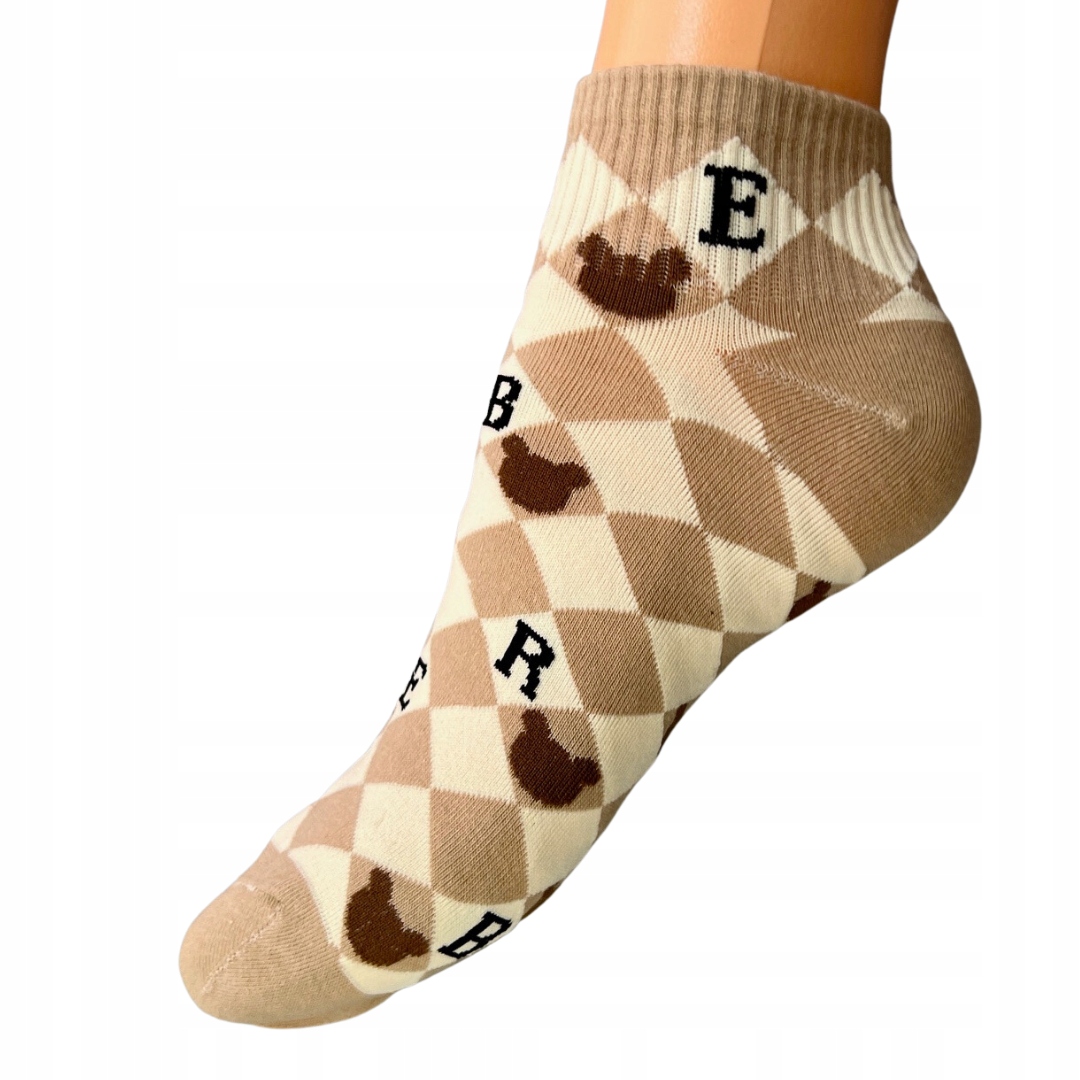 Skarpetki ciepłe czarne w głowę misia w brązową kratkę 39-42