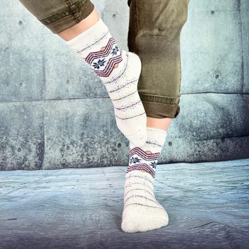 Skarpetki damskie alpaka ciepłe grube białe w norweskie gwiazdki 39-42