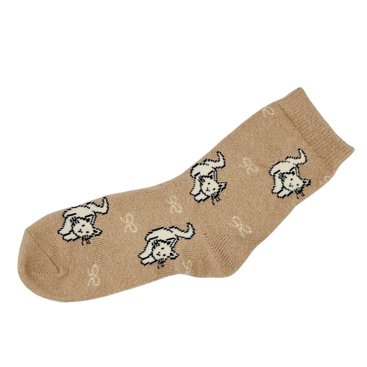 Styl i elegancja – stonowane, klasyczne kolory sprawiają, że pasują zarówno do domowego relaksu, jak i do bardziej eleganckich stylizacji zimowych. Dodatkowym atutem jest wzór w kotki.