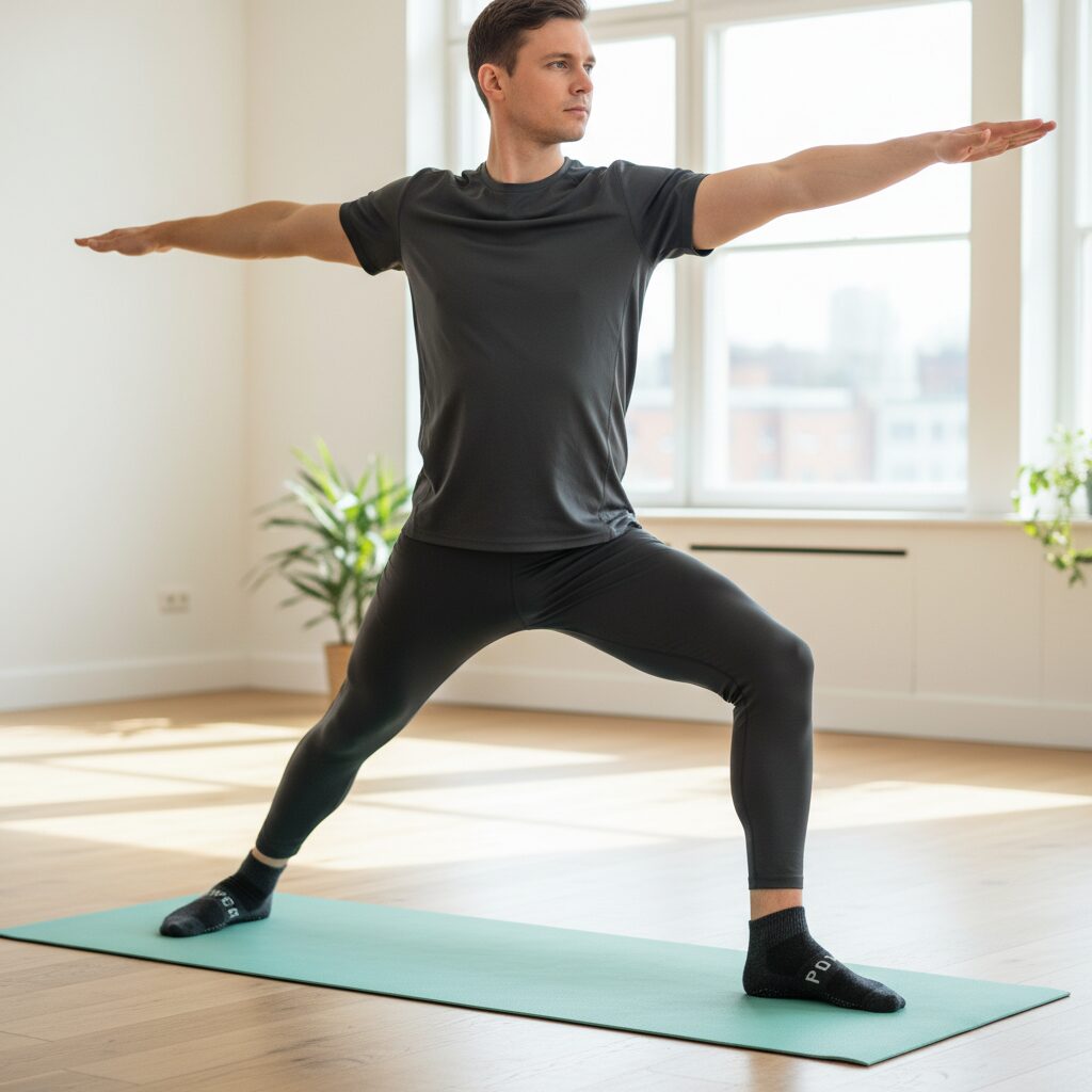 3. **Wsparcie dla stóp** – Specjalnie zaprojektowany kształt skarpetek wspiera naturalną budowę stopy, co jest szczególnie ważne podczas wykonywania różnorodnych pozycji w jogi. Pomaga to w utrzymaniu prawidłowej postawy i redukuje ryzyko kontuzji.