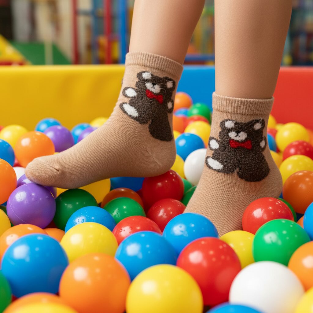 Skarpetki dziecięce bawełniane beżowe w ciemnego misia 28-30