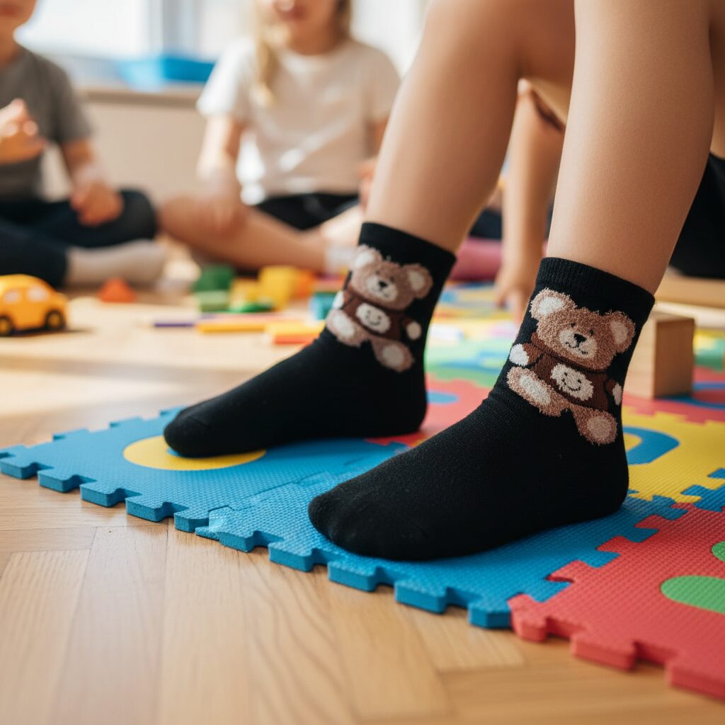 Urocze skarpetki dziecięce z puchatym misiem.