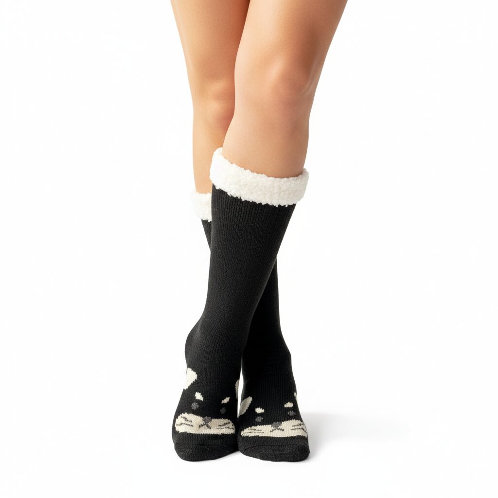 Przygotuj się na komfort i styl z naszymi skarpetkami kapciami antypoślizgowymi w czarnego kotka. Zostały zaprojektowane z myślą o tych, którzy cenią sobie wygodę w połączeniu z unikalnym wzornictwem. Te urocze skarpetki przyciągną wzrok każdego miłośnika zwierząt i dodadzą odrobinę radości do każdej stylizacji.