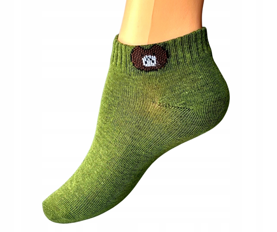 Piękne, mocne skarpetki bawełniane ze słodką głową misia po bokach ściągacza.