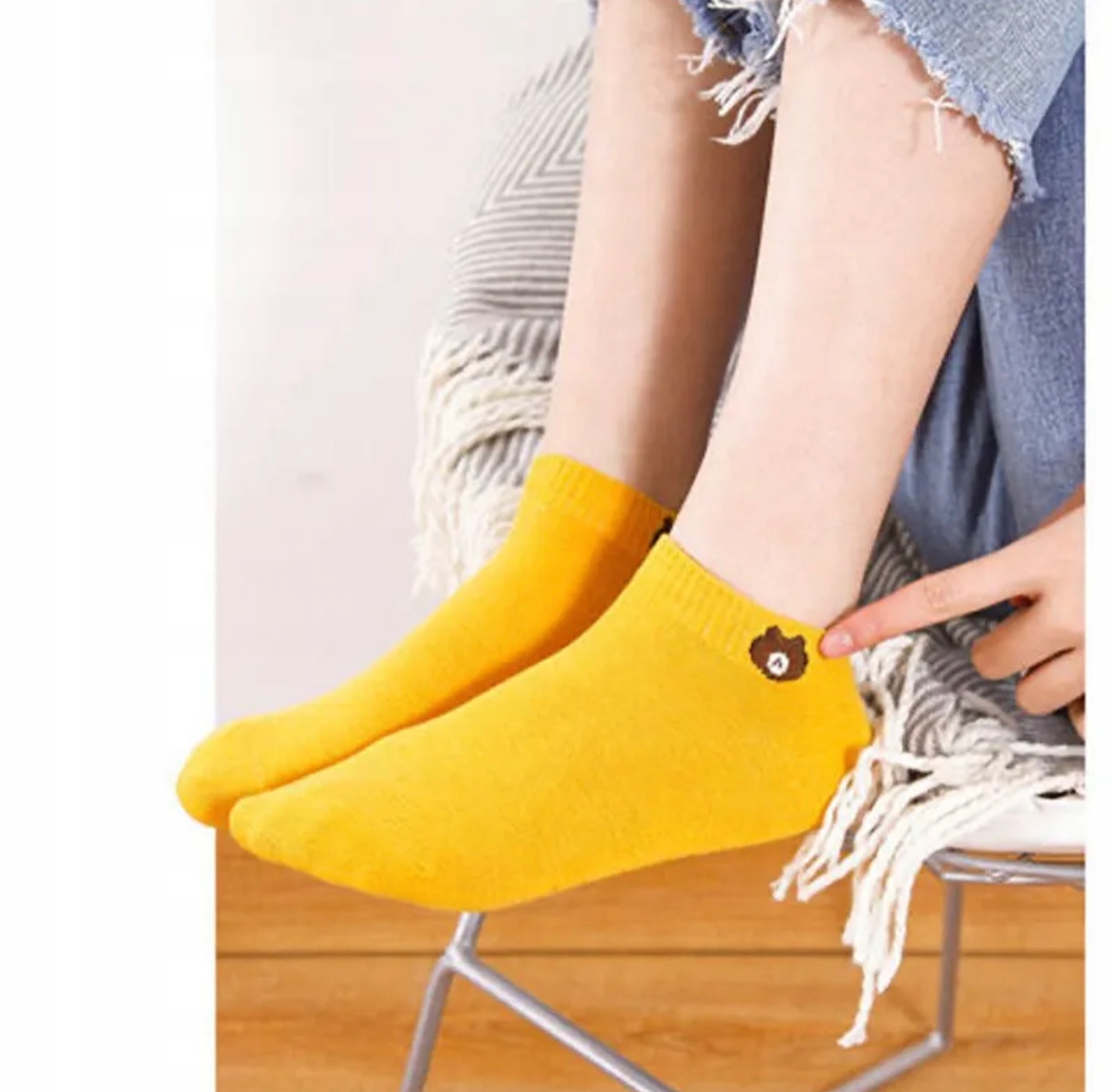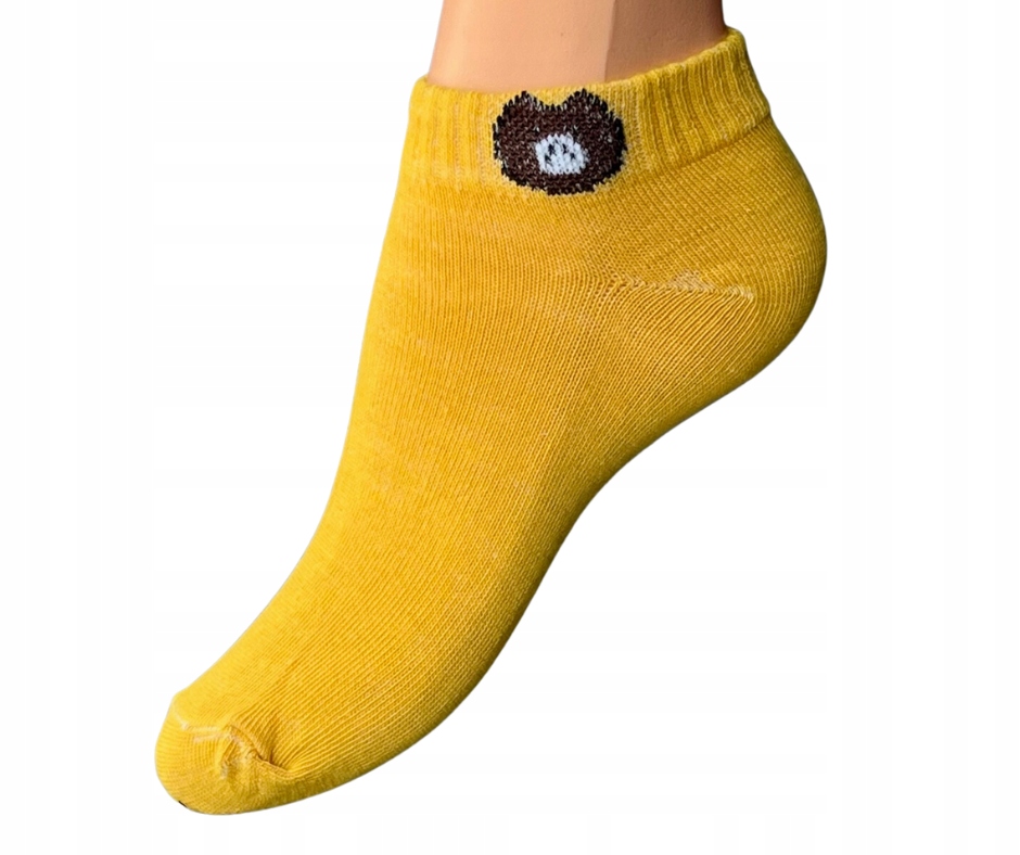 Piękne, mocne skarpetki bawełniane ze słodką głową misia po bokach ściągacza.