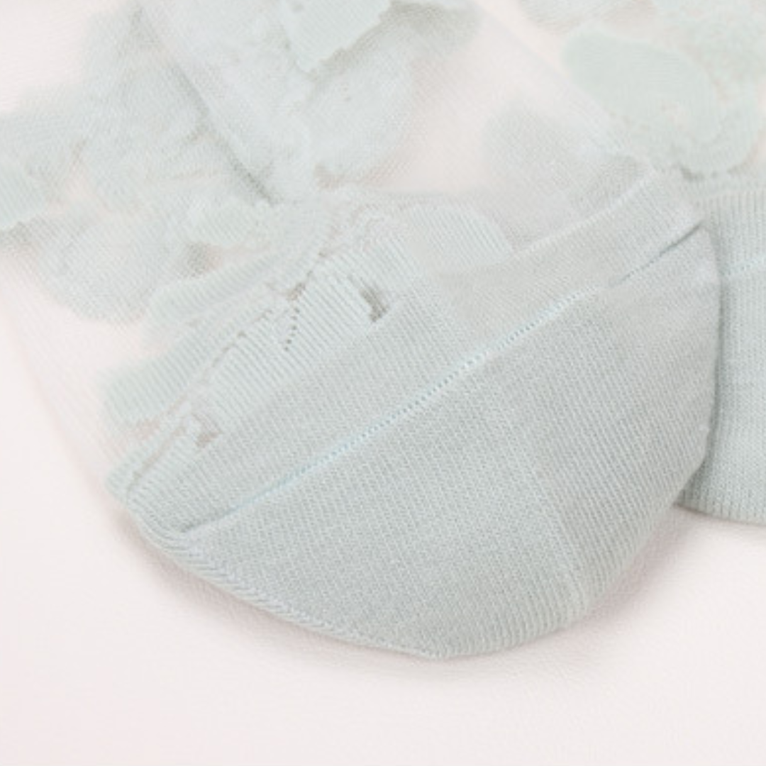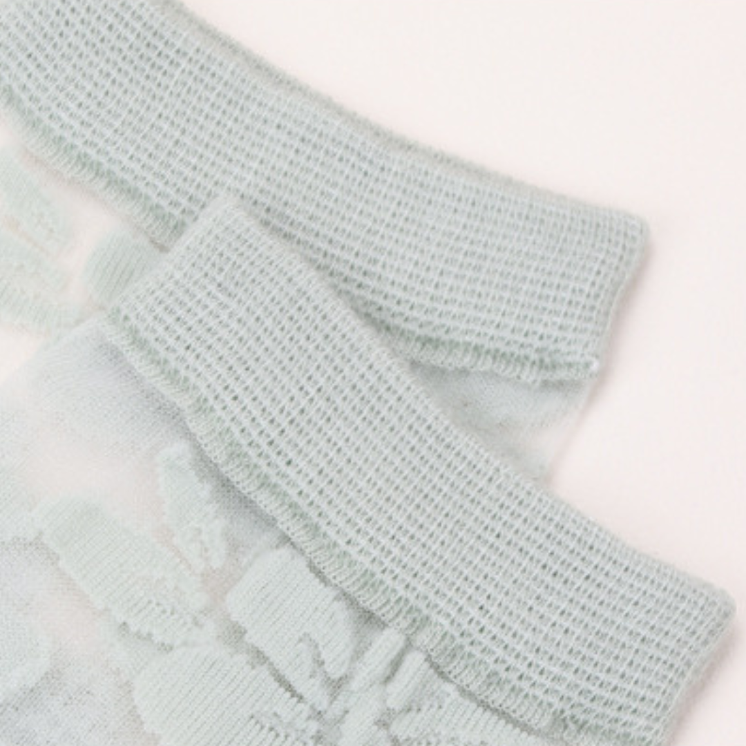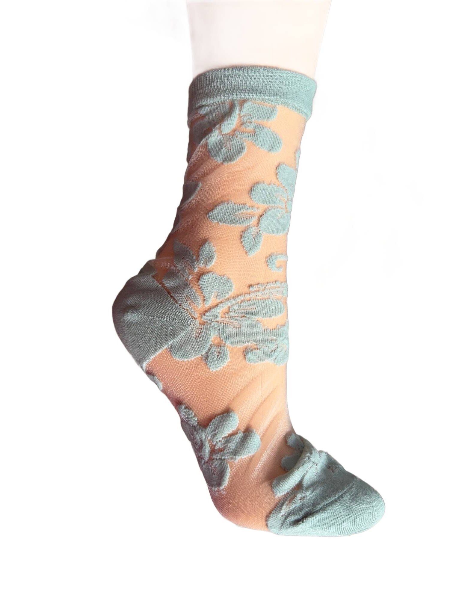 Skarpetki miętowe w zarysy kwiatów hibiskusa. Bardzo wytrzymałe.