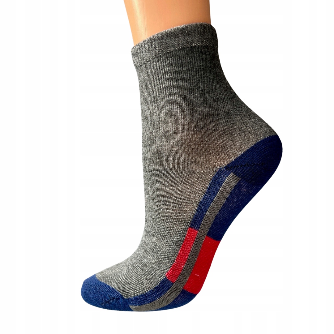 Skarpetki sportowe szare z granatowo-czerwone paski 36-38