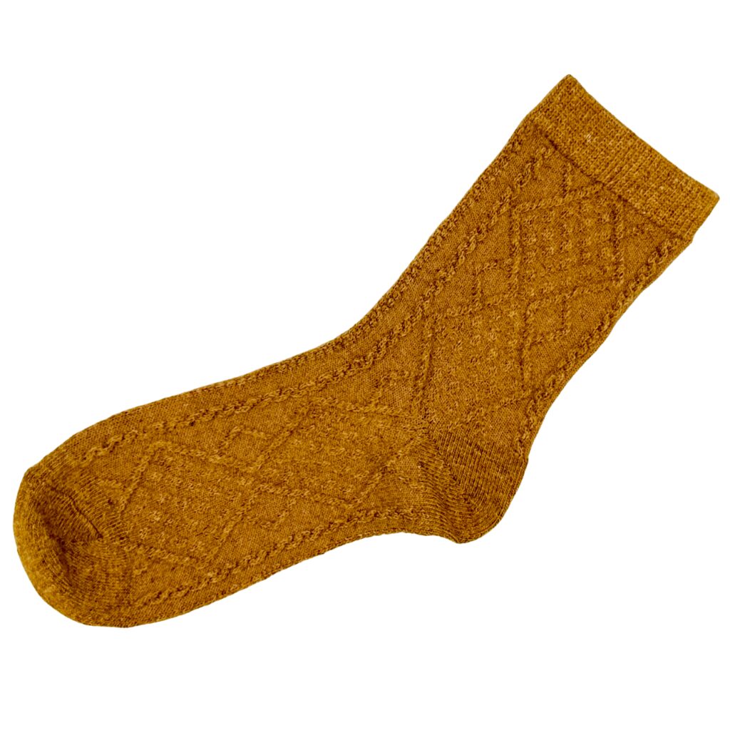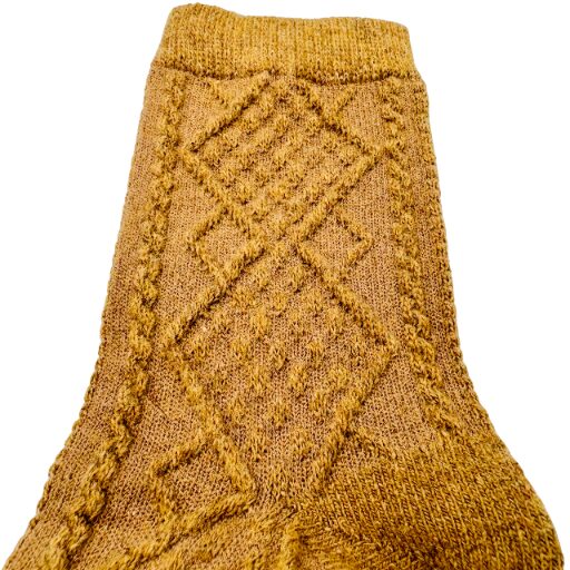 Skarpety z angory miodowe we wzór fantazyjnego warkocza jesień, zima 35-38