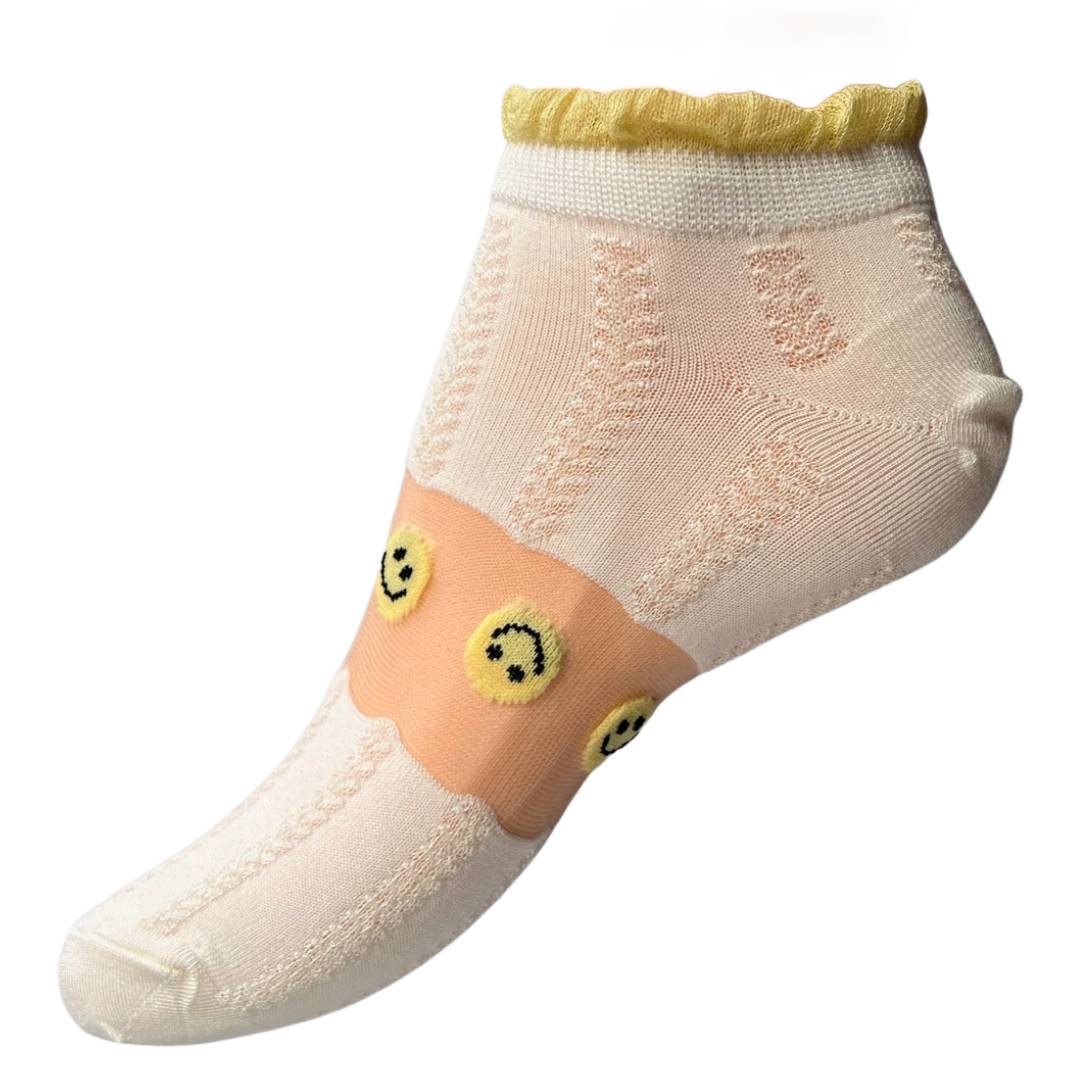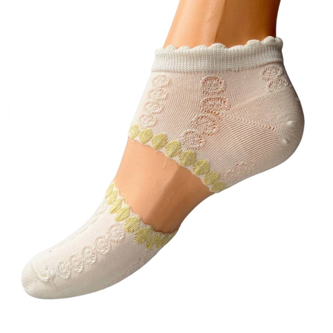 Stopki białe z przeźroczystym pasem w żółte grochy 39-42
