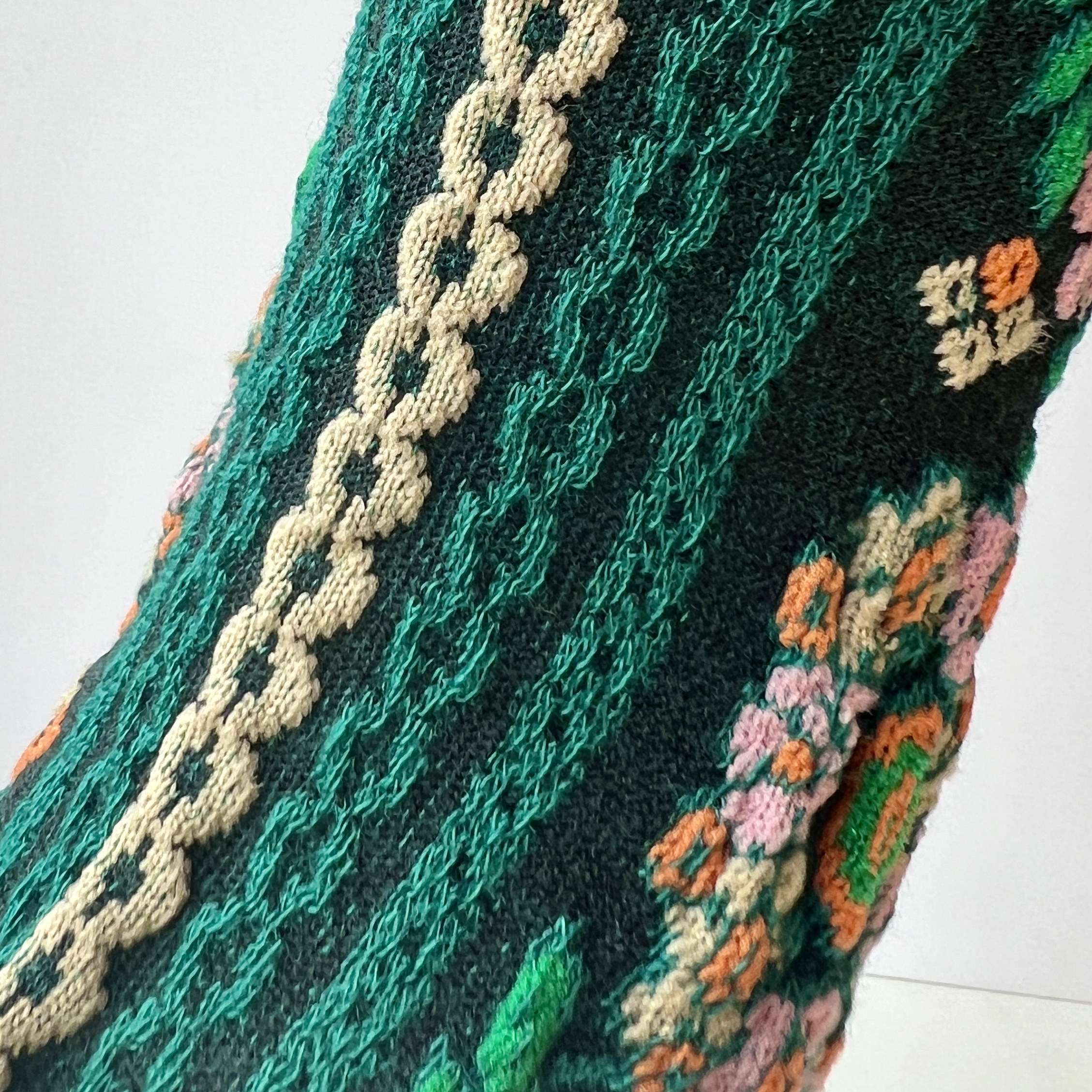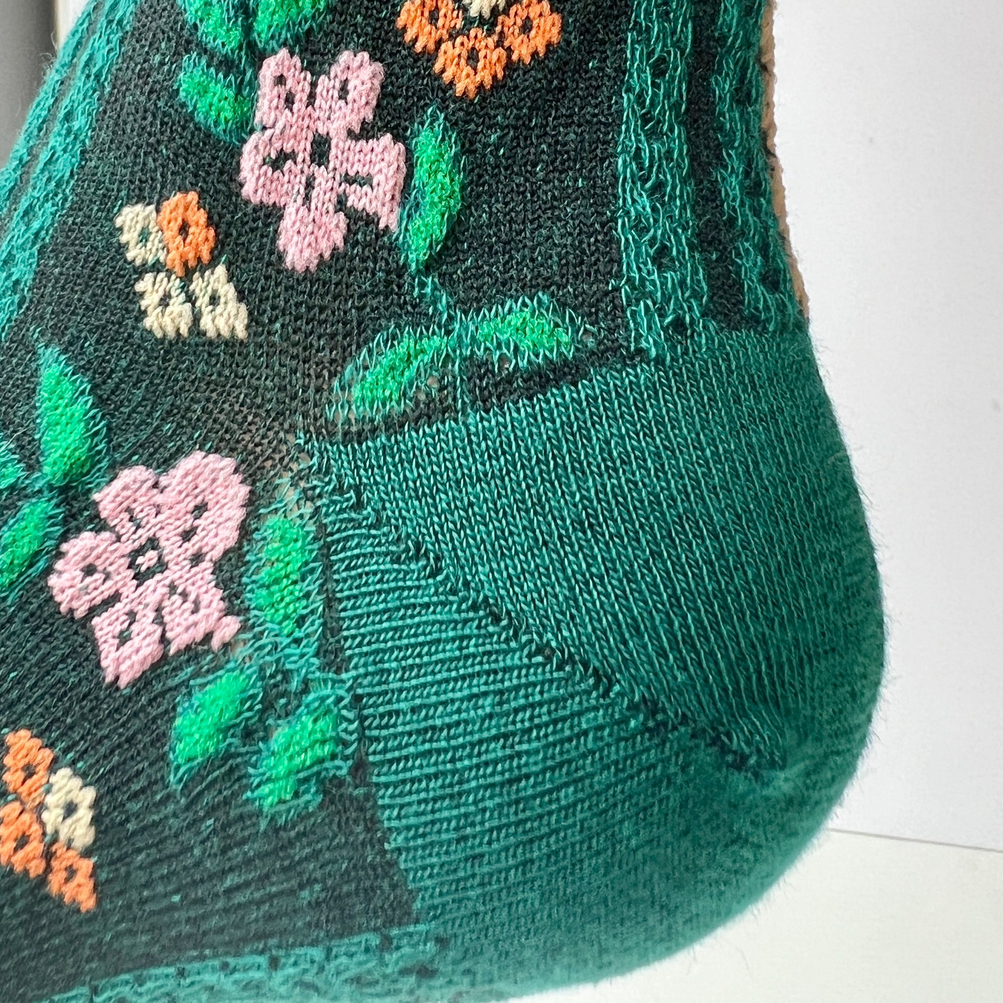 Wesołe skarpetki zielone etniczne w haft czarne w kwiatki