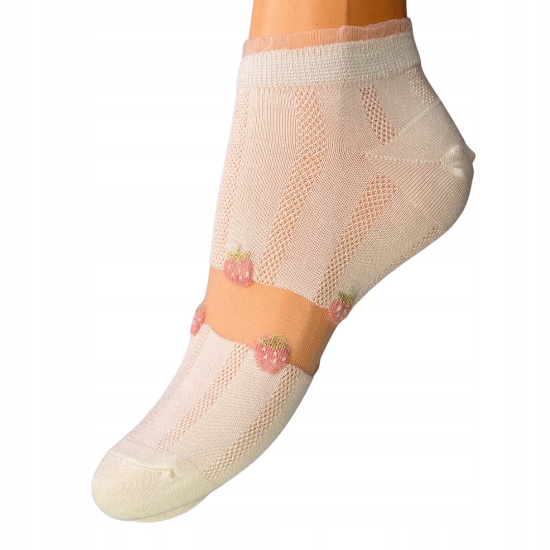 Stopki skarpetki białe w różową truskawką 35-38
