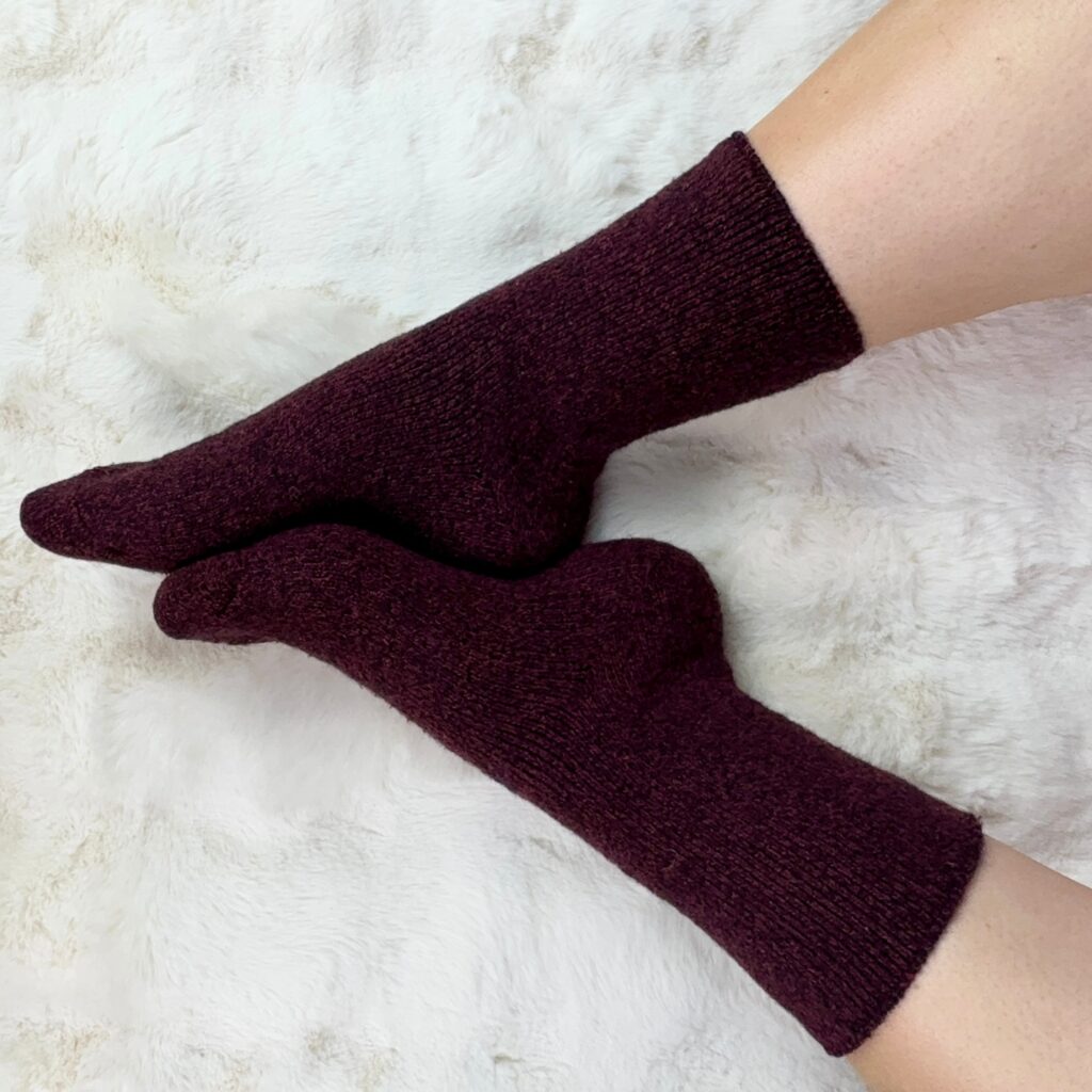 Wełniane skarpetki bordowe – ciepłe, miękkie i klasyczne