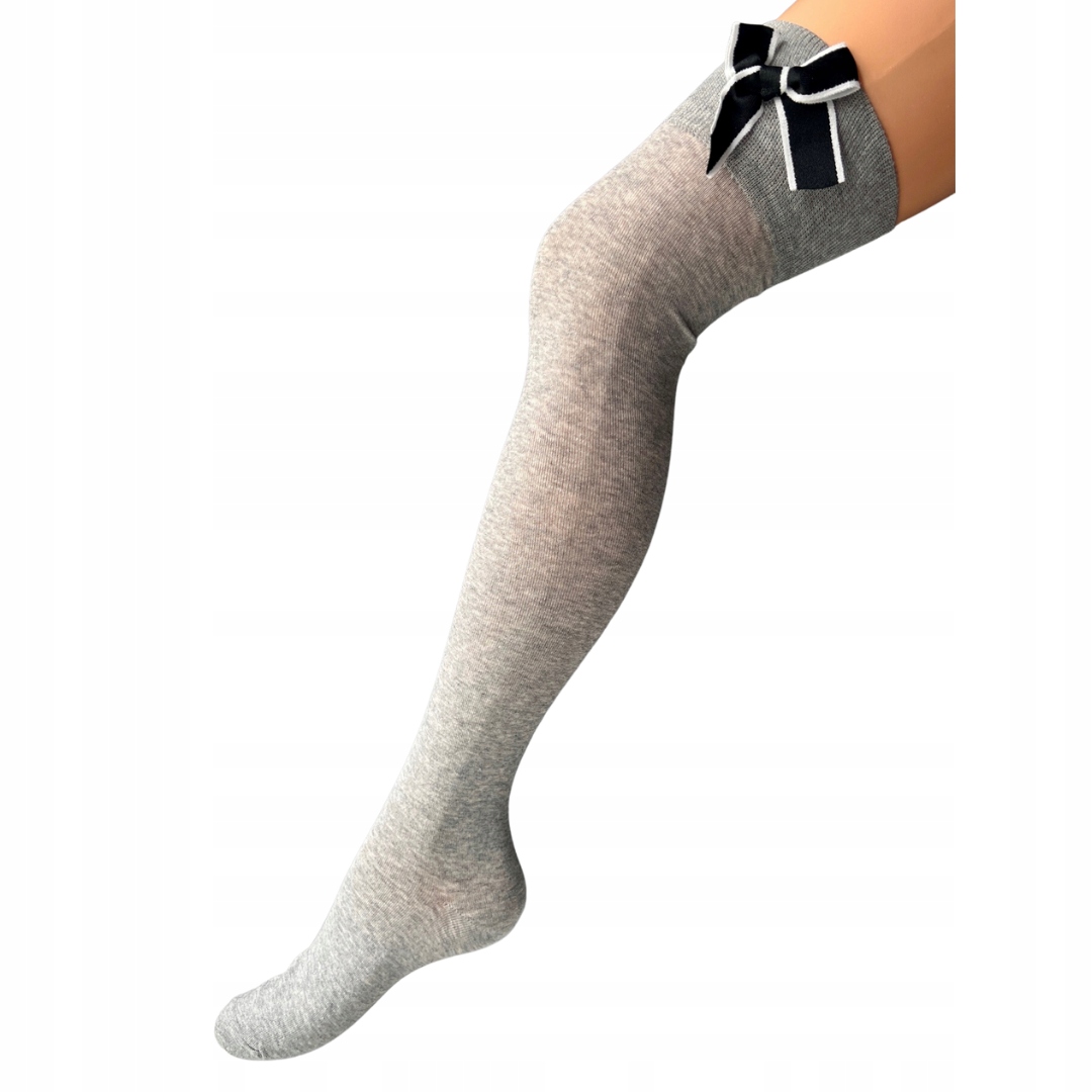 Zakolanówki z wysokojakościowej bawełny. Z boku z czarną kokardą.
