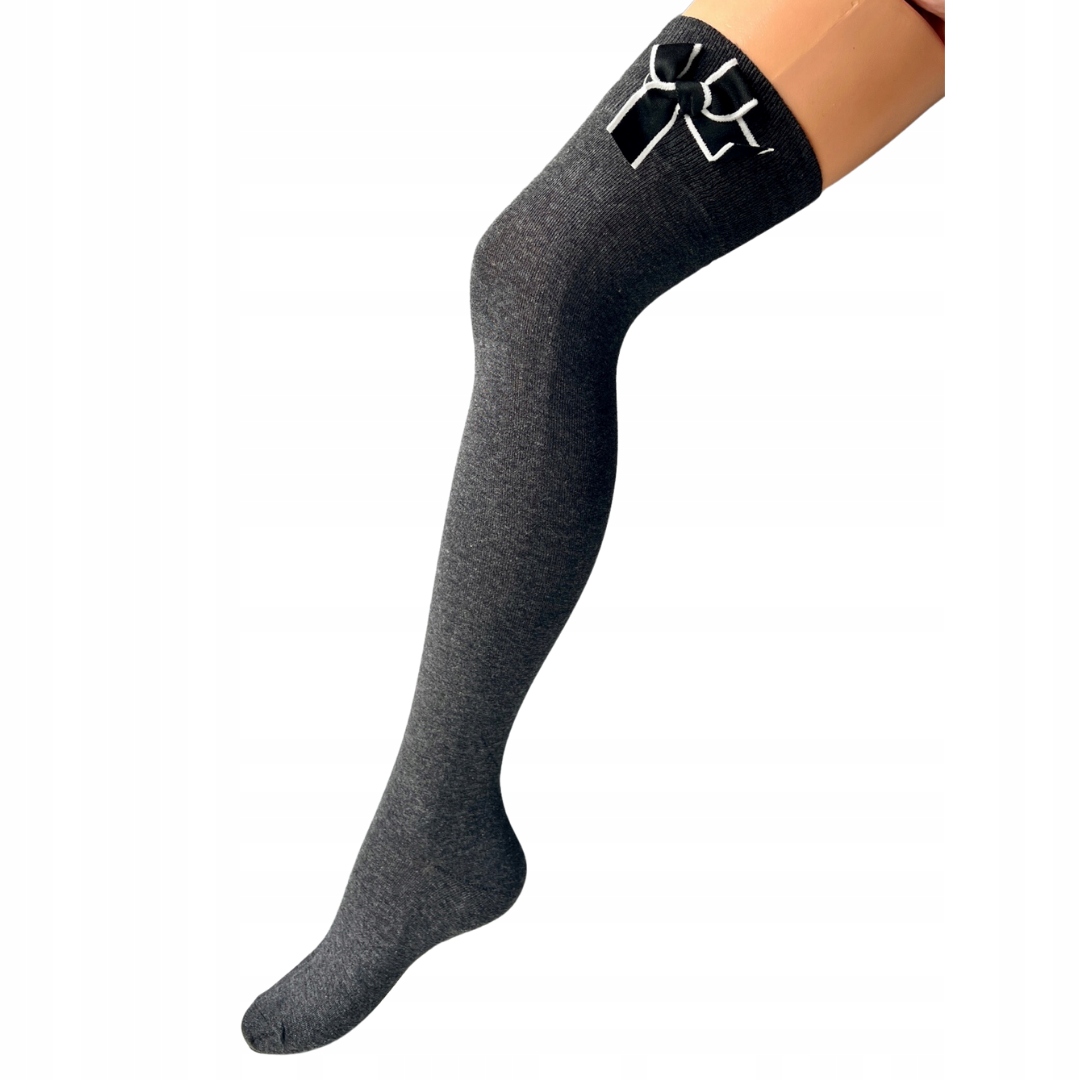 Zakolanówki z wysokojakościowej bawełny. Z boku z czarną kokardą.