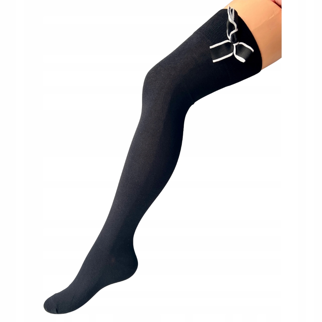Zakolanówki z wysokojakościowej bawełny. Z boku z czarną kokardą.