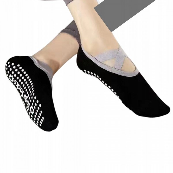 Skarpetki antypoślizgowe do jogi, fitnessu, pilatesu czarne z gumkami na stopie